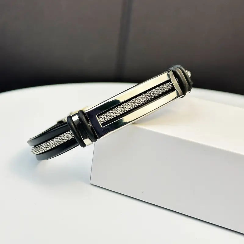 Elegant Black Silicone Bracelet with Metallic Detailing